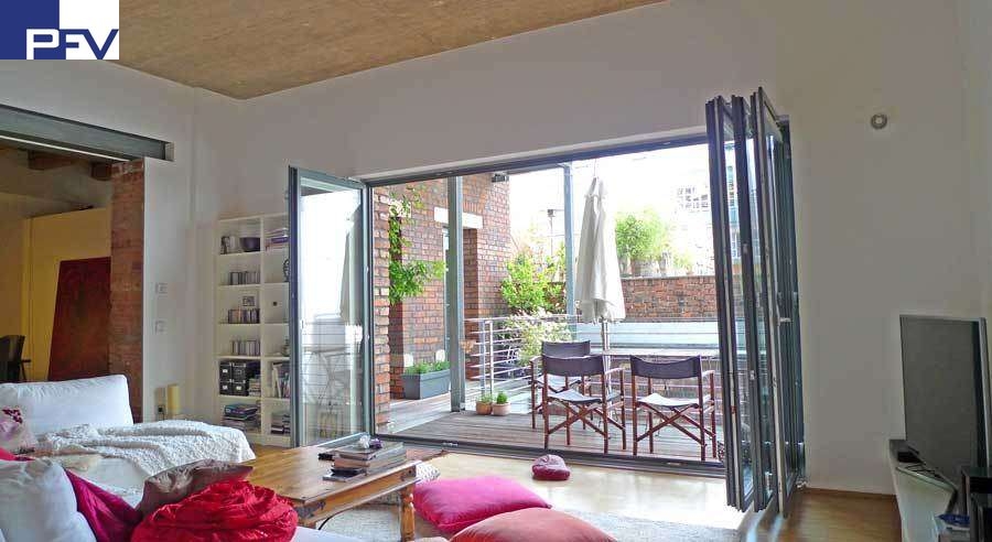 Genießen Sie außergewöhnliches Wohnen in einem denkmalgeschützte Bauwerk mit moderner Architektur sowie den Annehmlichkeiten und Vorzügen unserer Zeit! Mit viel Liebe zum Detail und ungewöhnlichen Ideen wurde der alte Hopfenspeicher 2010/11 in einzigartige Lofts verwandelt und entsprechend den heutigen Ansprüchen ausgestattet. Die historische Bausubstanz aus dem Jahr 1883 wurde bewahrt und z.T. hervorgehoben wie die gemütlichen Backsteinwände in der Wohnung. Die helle & elegante Loft-Wohnung bietet mit ca. 35 m² Koch- & Essbereich und dem offen angrenzenden ca. 32 m² großen Wohnbereich viel Raum um das tägliche Leben zu genießen! Der große Balkon (ca. 15 m²) mit sonniger Süd-Westausrichtung und gemütlicher Backsteinfassade ist vom Kinderzimmer und vom Wohnzimmer aus zugänglich - hier ergeben die komplett auffaltbaren Balkontüren eine ca. 3,50 m breite Öffnung.